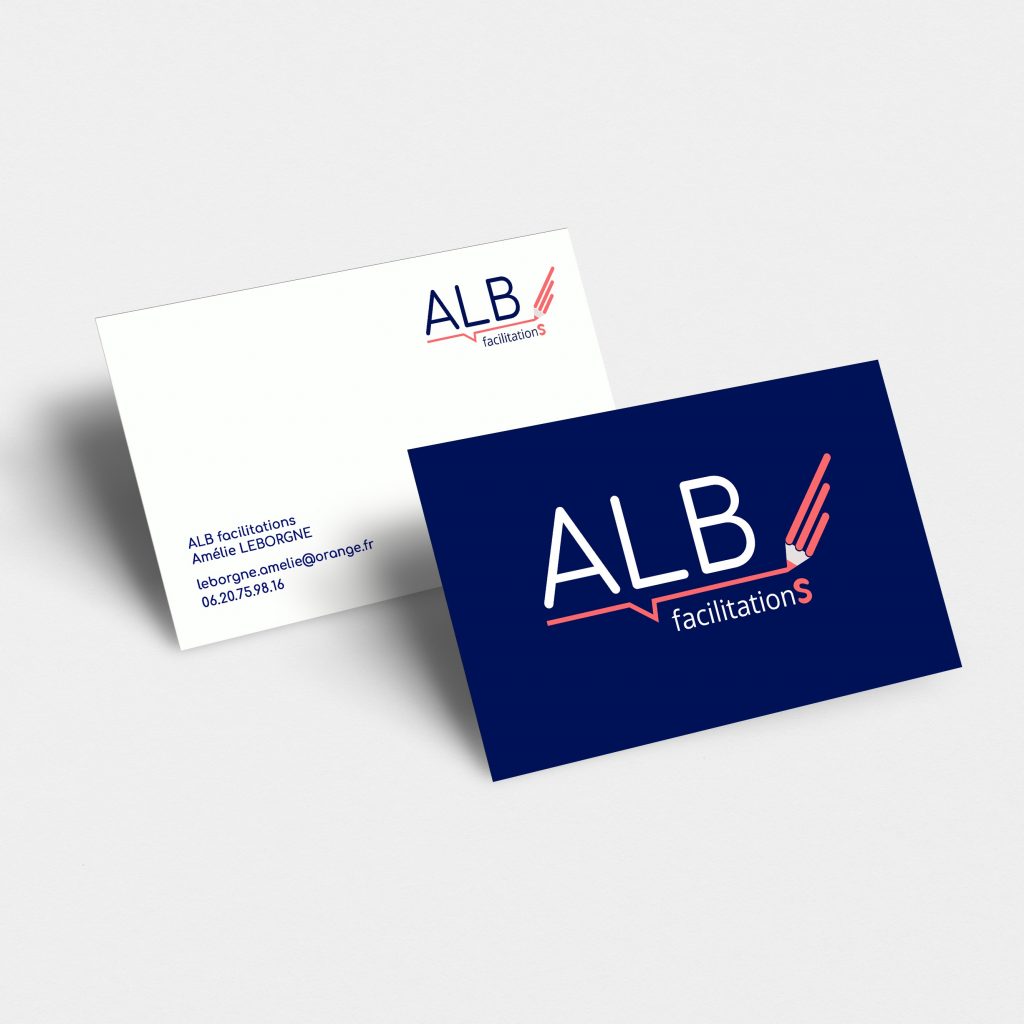 Création d’un logo décliné en plusieurs couleurs pour ALB facilitations, agence en facilitation graphique en Bretagne.