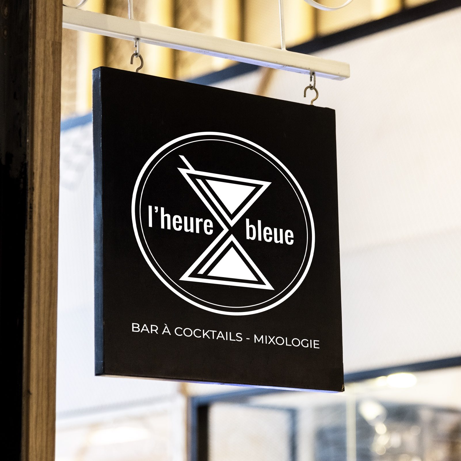 Réalisation d’un logo Brandsupply pour le bar à cocktails L’Heure Bleue. Concours remporté.
